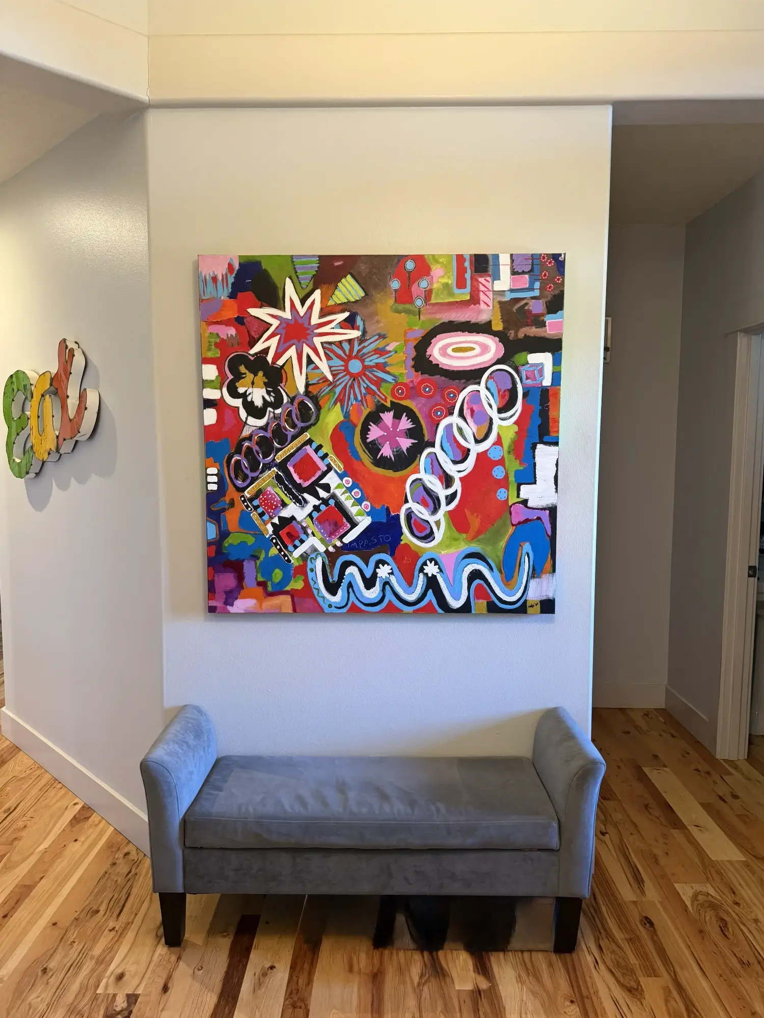 For me, a blank canvas offers inspiration; an opportunity to challenge myself and to problem-solve! I envision what I would like to see as a possible outcome and then work backwards to achieve it. I laugh because I always pivot and re-imagine until I’m satisfied and arrive at a piece totally different from what I thought. Music and art exist side by side; the yin to its yang.