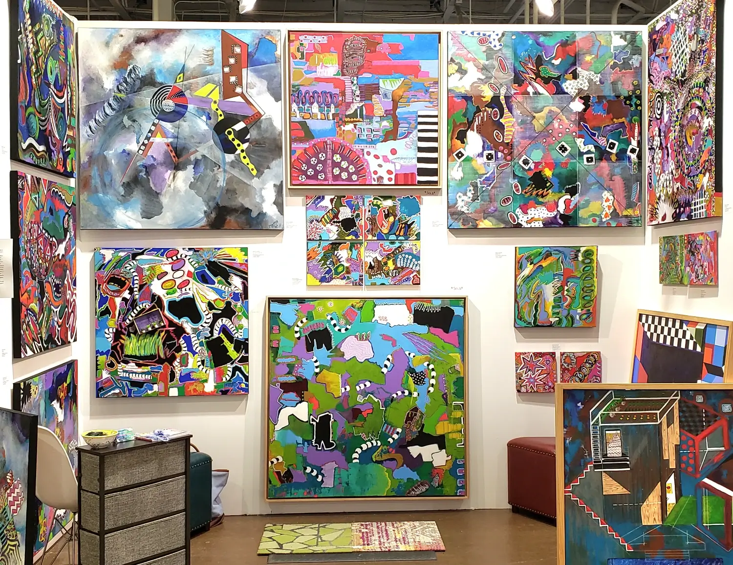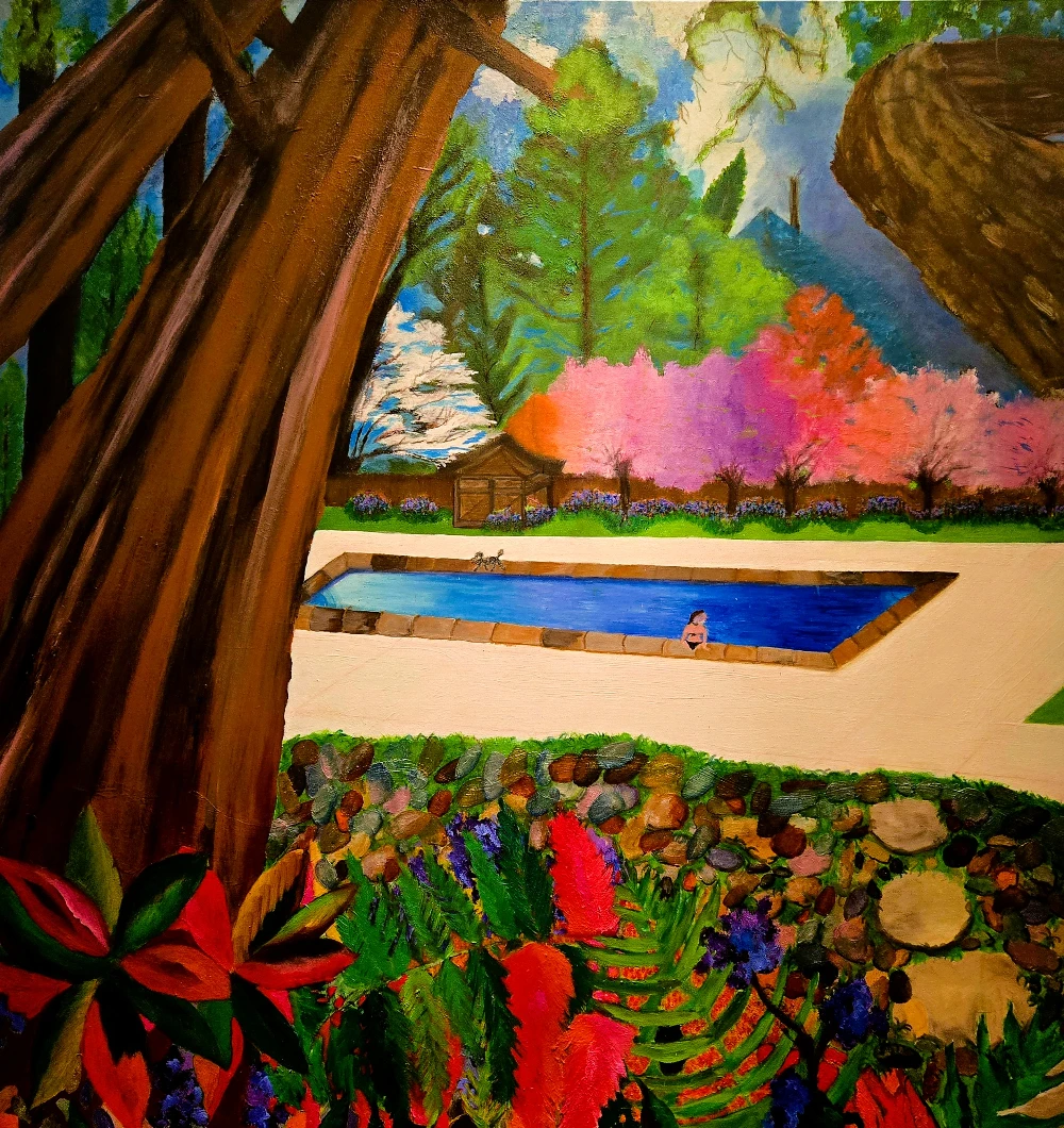 My paintings draw from childhood memories and experiences shaped by my exposure to not only the rich culture of Asian influences at home and in the San Francisco Bay Area, but by the admiration I have for my parents who showed on-going support to me for pursuing a strong fine arts background. My mom’s profound encouragement to my sisters and me to tag along to the artist’s studios she visited, most definitely had a positive impact on us. She isn’t here to see my own art studio, but I know she would be so proud. My mom showed me that you can live a life full of color, or not. I love to travel in general as it offers perspectives like no other where your sense of balance is often disrupted in a good way. But my most enduring and magical influences come from being mom to my three sons.